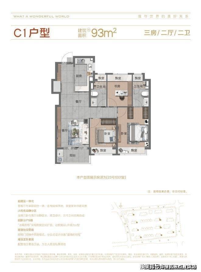 户型设计:高层户型包括建面约 76㎡的两房二厅一卫、83㎡的三房二厅一卫、93㎡的三房二厅二卫等。叠墅户型有 123-138㎡等多种选择。项目采用精装修交付,装修标准约 2000 元 /㎡。