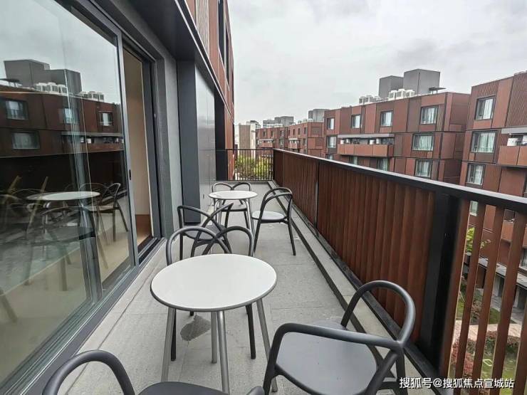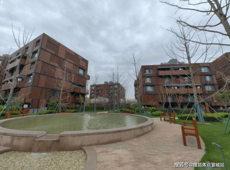 沁风雅苑一共由18栋6层的叠加组成,整体呈倾斜镜像状排列,外立面采用木色调,风格极为独特。