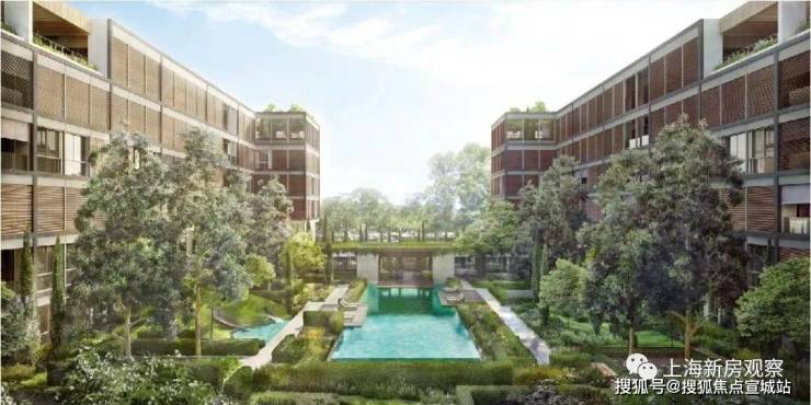 2012年,新加坡开发商庆隆集团以6.1亿元获得「沁风雅苑」地块;项目容积率1.2,由18栋6层叠墅组成,户均面积约358㎡,108套房源,当时楼板价才14780元/㎡,溢价率25.9%。从目前的新江湾市场来看,套均总价或不低于3000万,整体呈倾斜镜像状排列。
