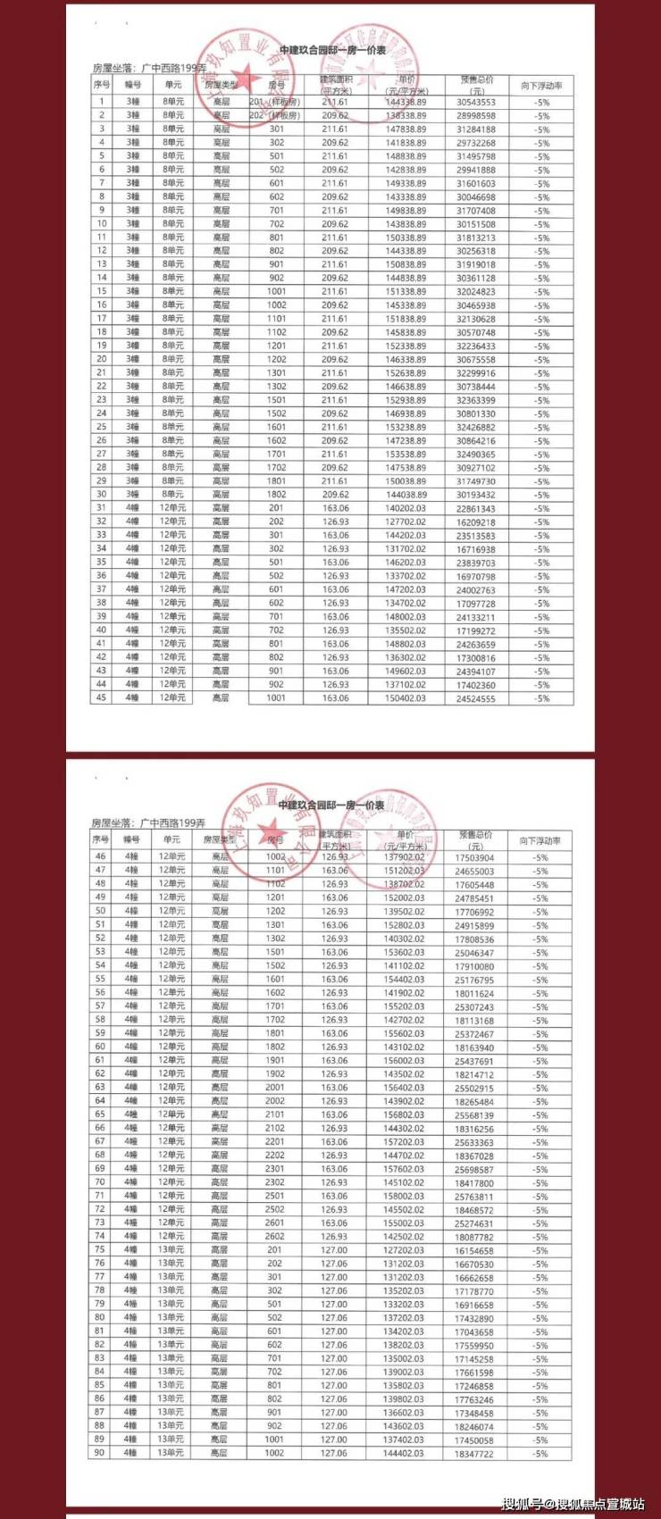 一房一价表如下: