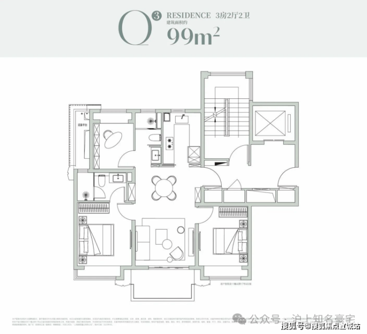 该户型是经典的四叶草布局,四开间分布在四角,兼顾私密与互动,是二胎家庭的优选!