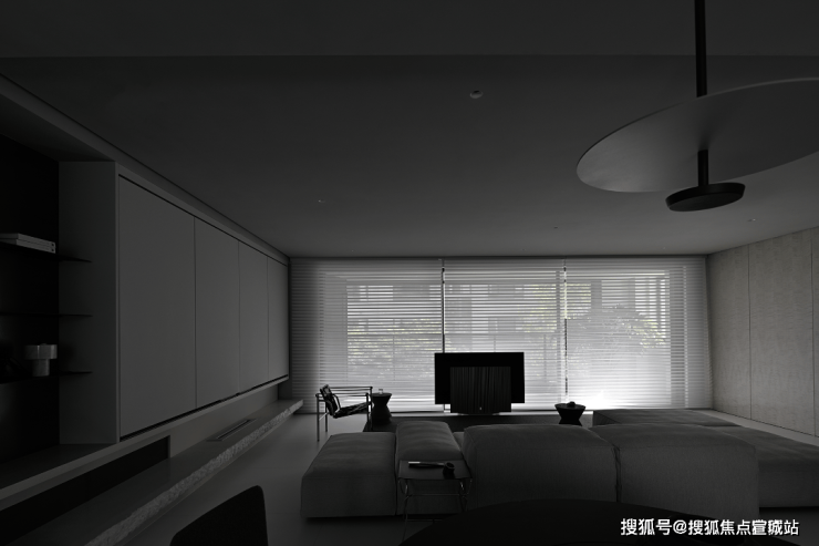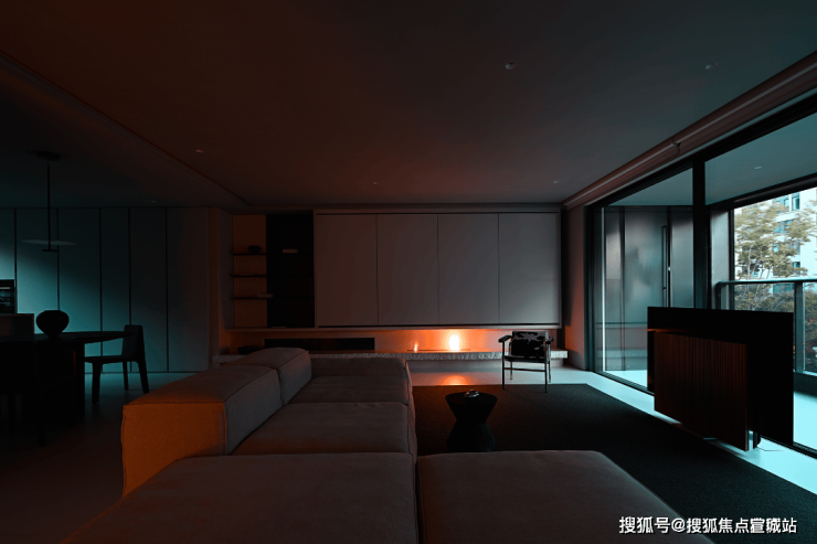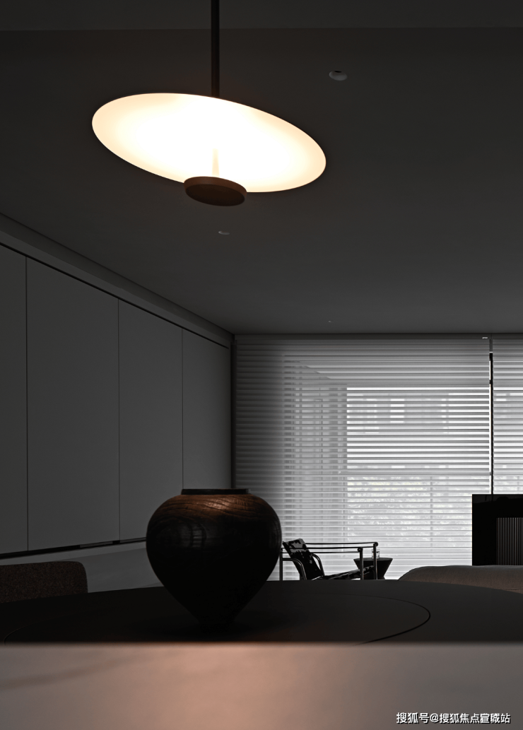 若是想营造一个静谧独处的世界,只需要拉下落地窗的百叶帘,再打开室内的灯光,此时此刻,呈现在眼前的就是一片静谧。