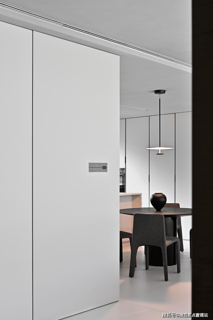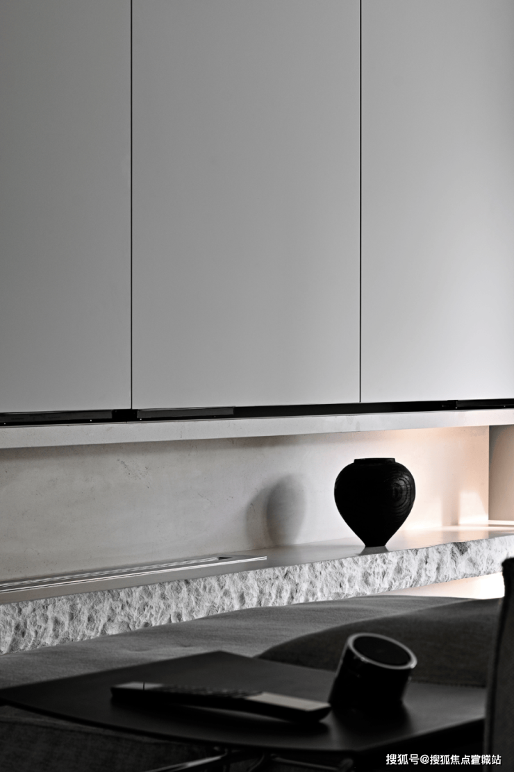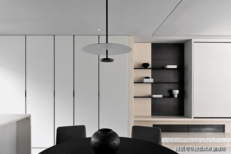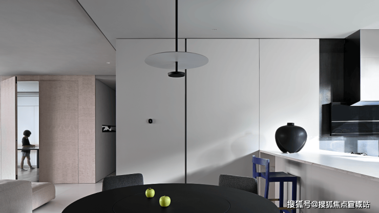 空间内,干练的线条承担起了平衡空间的作用,线条看似是可有可无的存在,但是在这座空间之中却成为了必不可少的存在,线条以其流畅之姿,在空间内游荡,巧妙的将空间的格局打开了。