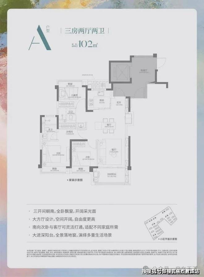 产品类型:建筑面积约89-102㎡精致高层、建筑面积约160㎡稀缺叠加