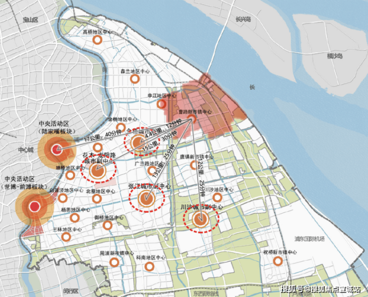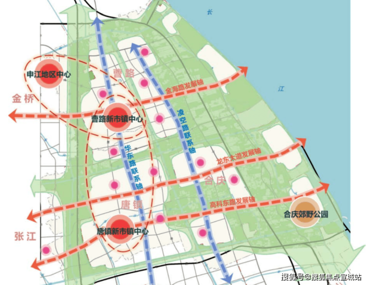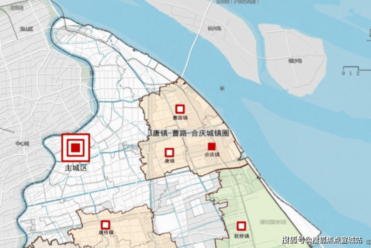 示意图规划中明确 ,唐镇-曹路-合庆城镇圈是浦东东部近郊被主城区大产业环绕的、且处于沿江通道上的重要功能板块。