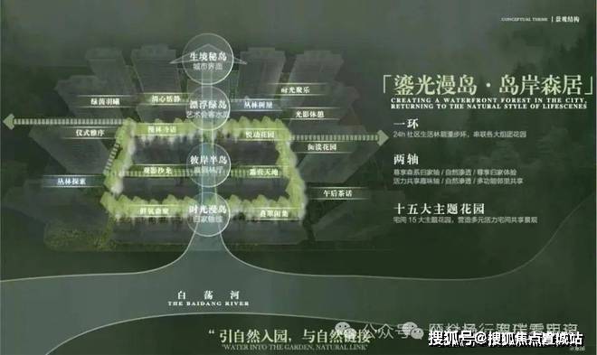一环:24小时林荫漫步环,串联各大组团花园.两轴:约160m森系归家中轴,移步易景,营造尊崇归家礼序.活力共享趣味轴,多元交融的全龄森活场,境藏丰盛时光.