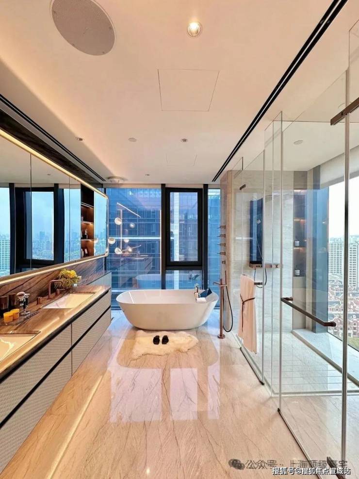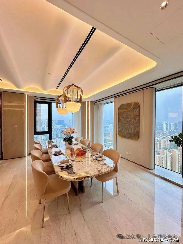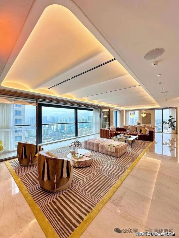 装修上,将时尚与奢华巧妙融入每个角落,所有的窗帘、移门、提升窗、灯光、空调、新风、地暖都可以通过手机远程控制。
