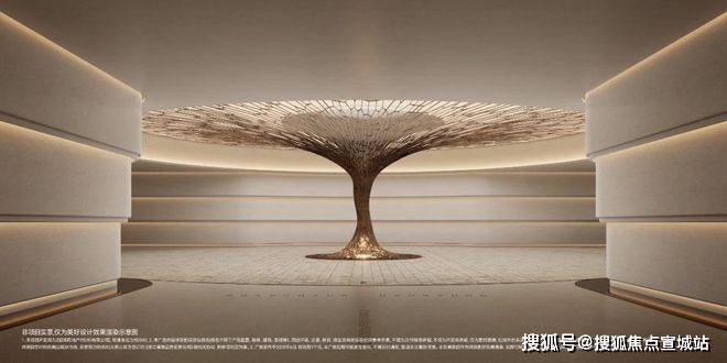 项目大门内外两重门厅景墙运用月光米黄石材近1000 方,搭配香槟金金属线条,汲取爱马仕全球旗舰店的双曲面叠墙造景手法,增加景墙奢华质感。
