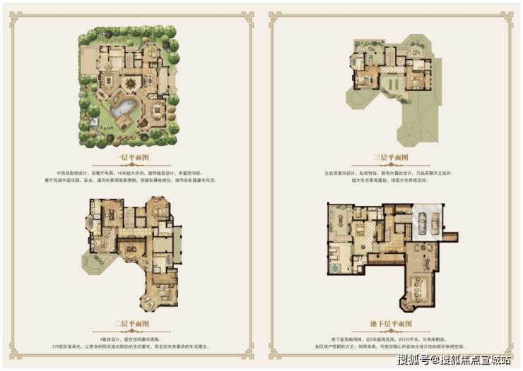 高配:大花园、大露台、下沉式庭院、全明地下室、私家电梯、外加多部车位