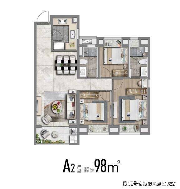建面约124m²四房,市面常见的四房普遍要135平,这个约124平米户型功能性拉满,且控制了总价,给予更多小伙伴一步到位的机会。