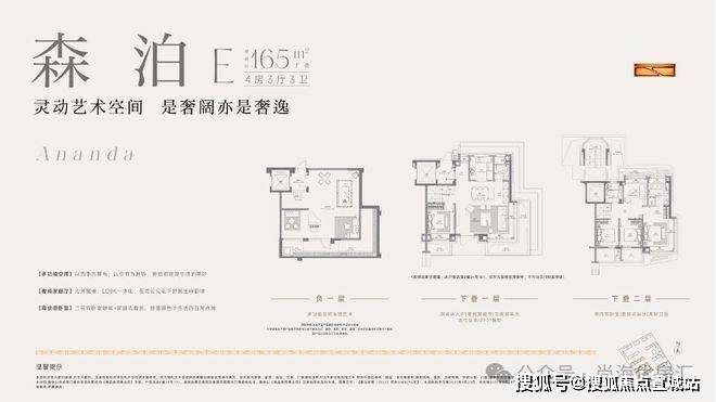 建面约165㎡下叠预计使用率最高约148%、三向采光地下、LDBKG双入户流线、南北通透主卧套房