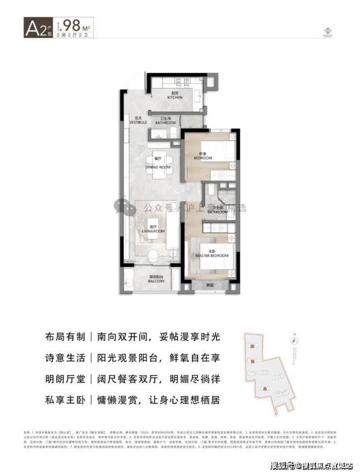 其中,建面约98㎡爆款户型,餐客厅一体化,连贯阔朗阳台,融合多维生活场景,实用性极强;双卧空间较为均衡,酒店式主卧带独立卫浴、观景飘窗;次卧空间宽适,可定制各类功能,适合单身、新婚、小太阳各家庭阶段……相比同面积段户型,以更舒适的空间尺度提升居住体验。