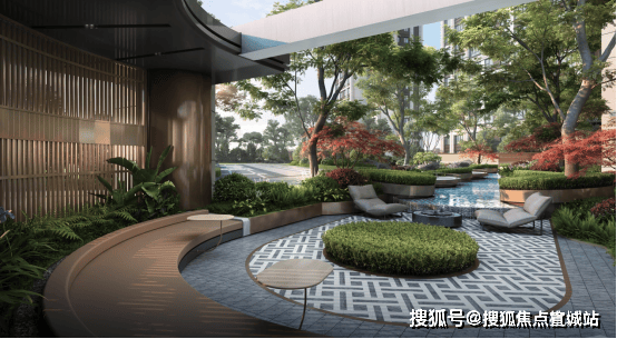 社区中央景观位的林下会客厅,糅合精工材质和自然光影,邻里社交假日休憩,让人在此流连时光。
