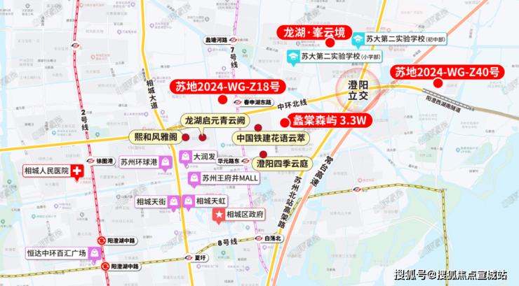交通配套:周边有在建的地铁 7 号线延长线和规划中的 8 号线,临近中环北线、苏州北高架路,还有在建的阳澄湖星济隧道,4 站可直达苏州北站,6 站抵达园区核心区域。