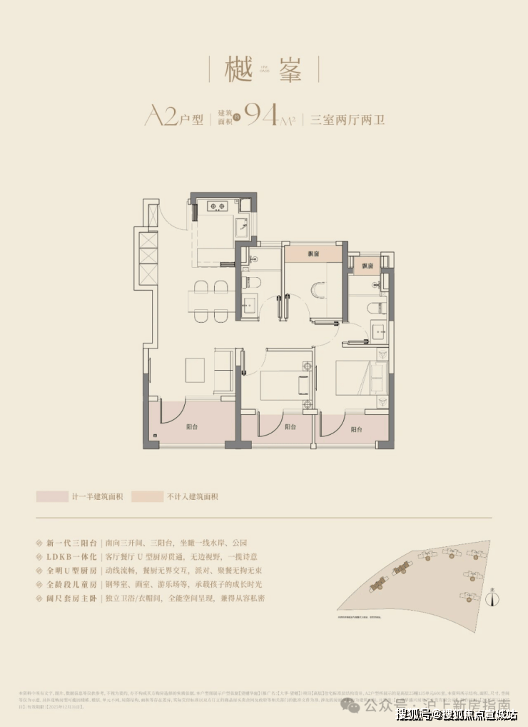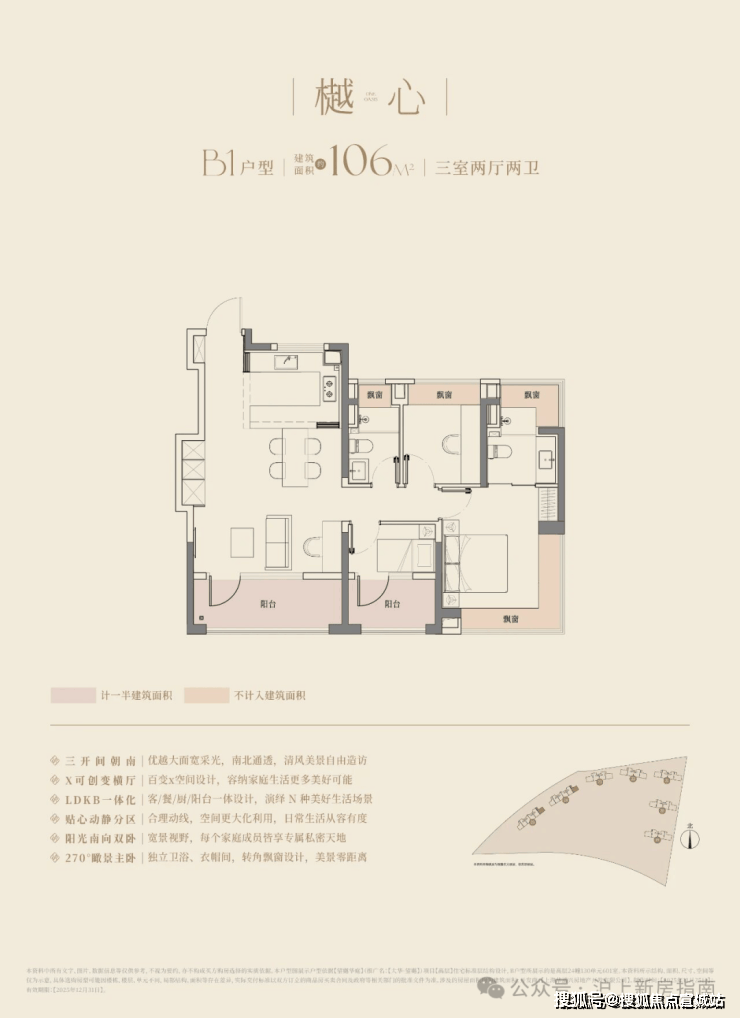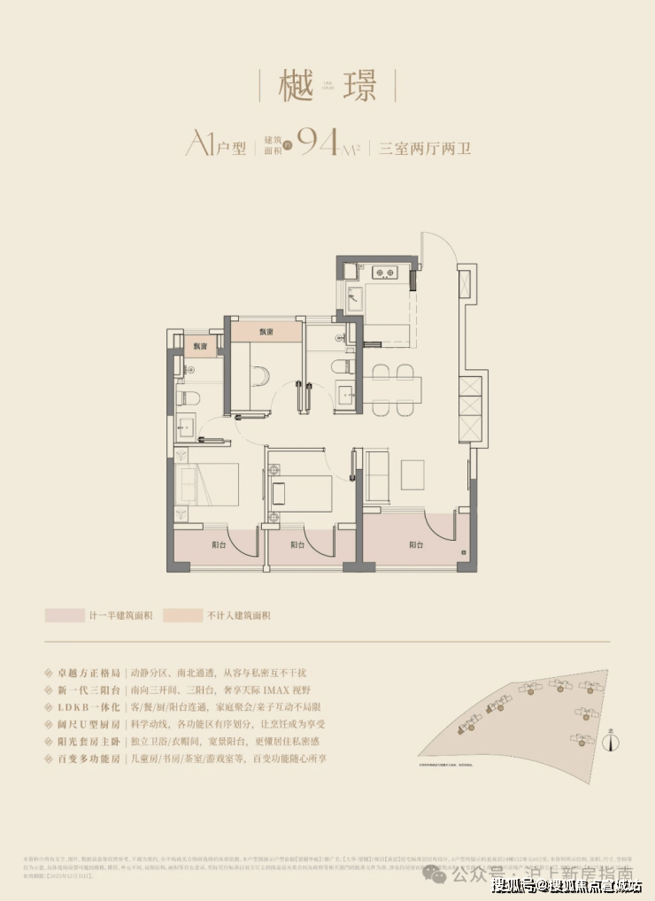 94㎡三房两卫: 三阳台 + 全景飘窗 ,最高可拓展约19㎡