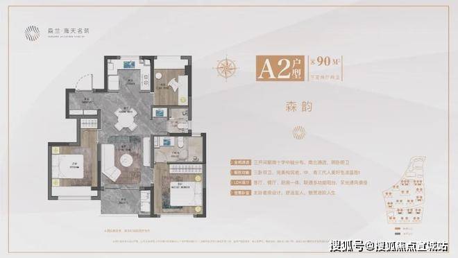 1、建面约90㎡做到了三房两卫,构筑老、中、青三代人美好生活蓝图。格局上实现了真正的全明空间与南北通透,客厅、餐厅、厨房一体,联通多功能阳台,采光通风俱佳。