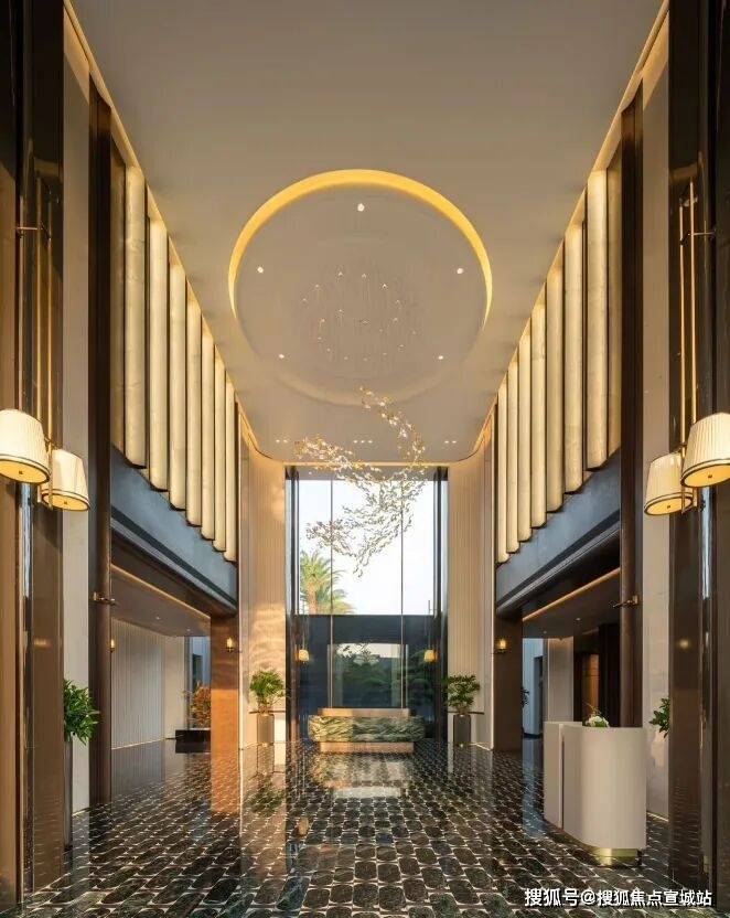 另外,项目的公区配置也是直接拉满。小区主入口打造了约30米宽、约9米高的归家门庭,小区中心则有度假景观水池、中央草坪花园、不同主题架空层等改善配套,搭配香槟金铝板+大面积玻璃的外立面,豪宅气质凸显。