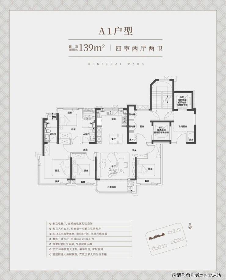 建面约 139㎡四房两厅两卫:打造 7 米以上阔景横厅,搭配大面积落地窗,270 度观景主卧套房包含独立卫浴与步入式衣帽间。