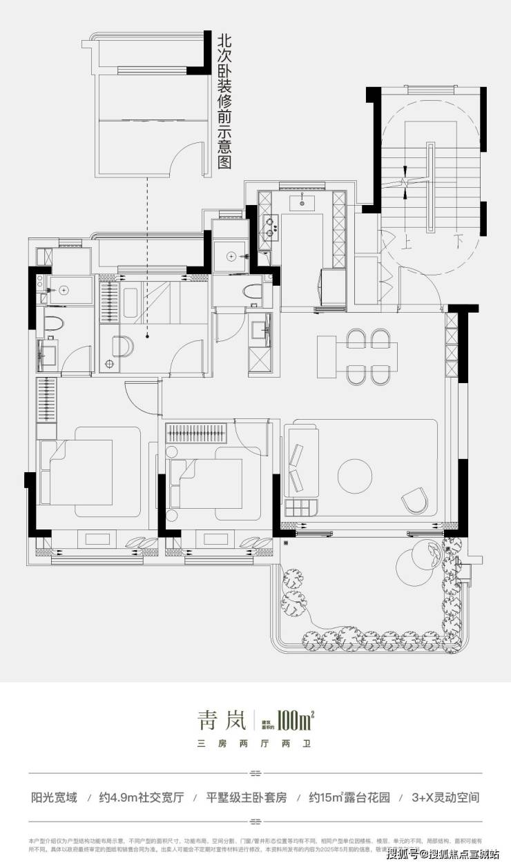 青岚户型 建筑面积约100㎡ 三房两厅两卫