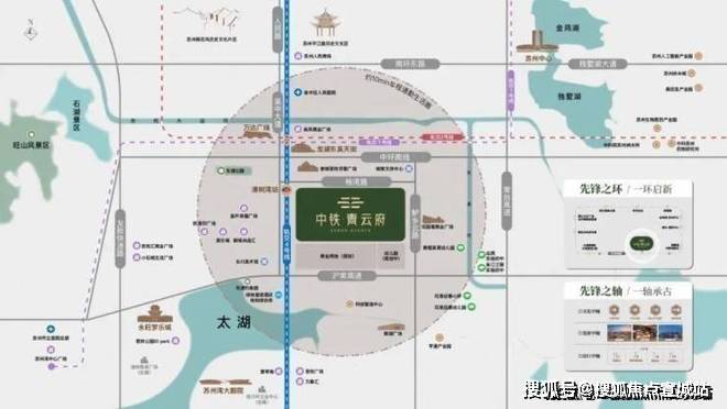 ◎发展之环:中环东接园区产经引擎,西融狮山创新脉络,南承太湖新城生态蓝图,北启高铁枢纽经济,便捷通达苏州多中心,启幕现代化城市发展新篇章。