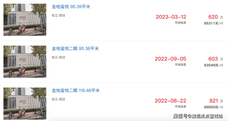 其他次新小区,比如泗泾大盘金地玺悦,二手房成交价也都在6.3-6.9万/㎡之间。