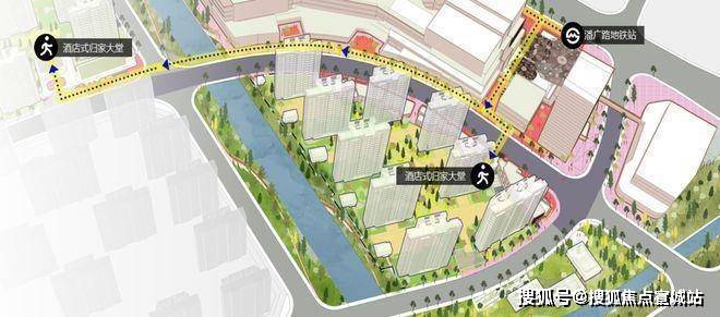 项目联通城市轨交、快速直达主干道和开放街区步道,打造三重立体路网体系,构筑组织多样性,实现快耍慢活的生活节奏,并借此串联起TOD大城里的商业、公园、街区、广场、地铁、酒店,六大场景。