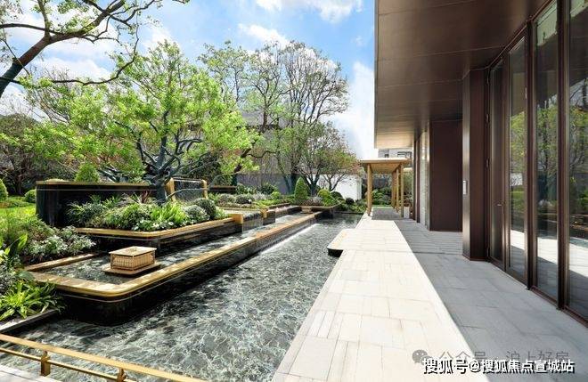 而即便正对公园,金隅公园东序也没有吝惜在内部景观的打磨,打造了“园中之园”,以“海派繁花”为主题,内部构建五重立体园林,并将各楼栋入户大堂嵌入内部花园中,使每一次归家也都有惬意舒适的情绪体验。