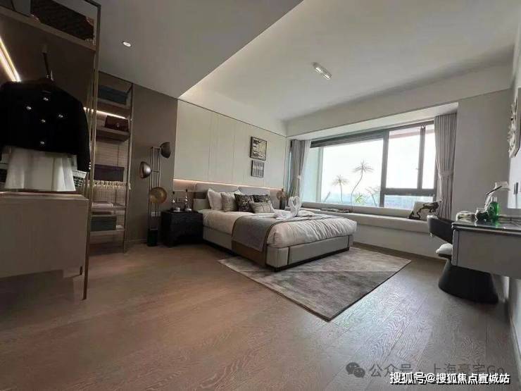 主卧套房设计,贯穿南北,自带卫生间和衣帽间,还有大面积飘窗,舒适度和私密性双爆表!