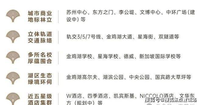 坐揽金鸡湖与独墅湖城市地标、商业旗舰、城市公园、五星级酒店、文化剧院等繁华盛景,苏州中心、东方之门、中环广场等地标配套环湖而立,奢享开放包容的国际滨水生活圈。
