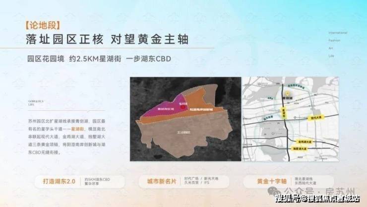 园区北扩星湖线承接青剑湖,打造湖东2.0板块。十字轴上,时代广场、新光天地、久光百货、月光码头、圆融购物中心、ICC、IFS聚合,堪称当下苏州繁华沃土。本案位于星湖街沿线,距离黄金主轴星湖街约2.5公里(直线距离)。