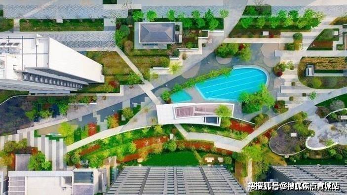 社区景观:6500㎡中央水岸花园、500㎡户外泳池及双精装入户大堂