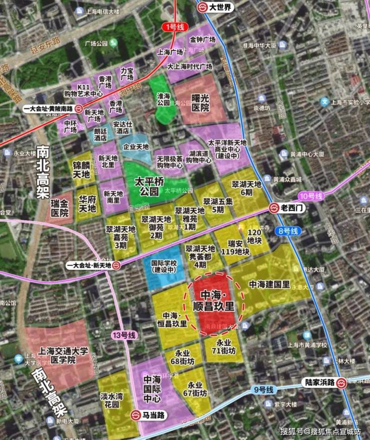 值得一提的是,该板块是真正的上海中心,周边四条地铁线路加持,分别是8号线、9号线、10号线和13号线,共有四个站点,可到达各个区域。