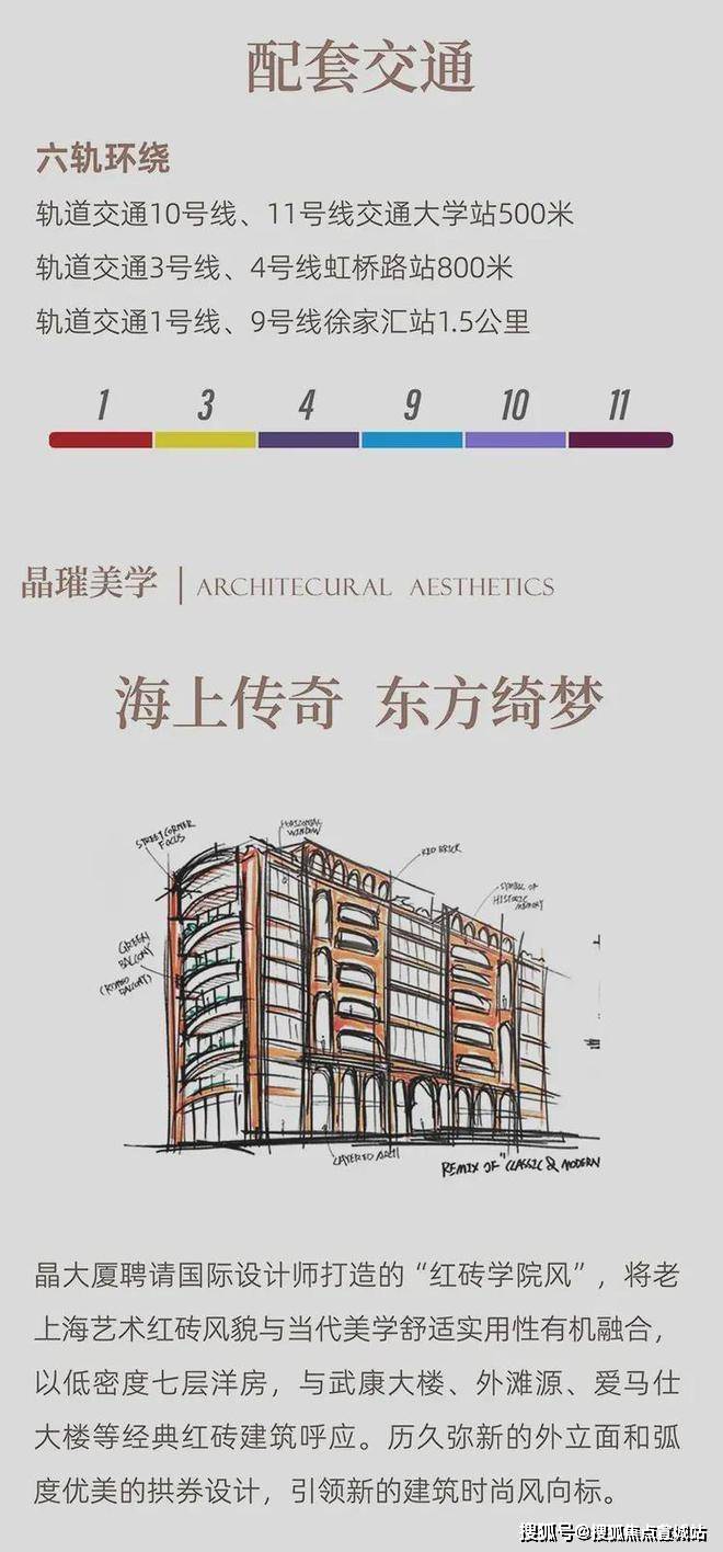 交通配套:步行 4 分钟到地铁 10/11 号线交通大学站,步行 10 分钟到地铁 3/4/10 号线虹桥路站、地铁 1/9 号线徐家汇站,6 轨环绕。