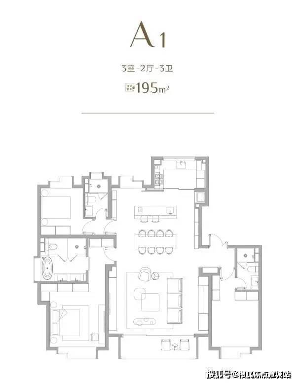 不过,重中之重还是这个建面约195㎡奢阔三房户型。