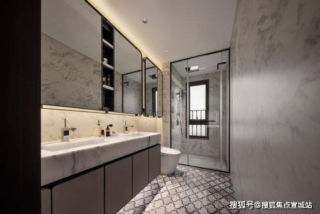 主卧酒店式套房+双台盆+270°转角飘窗,尺度与舒适度登峰造极。