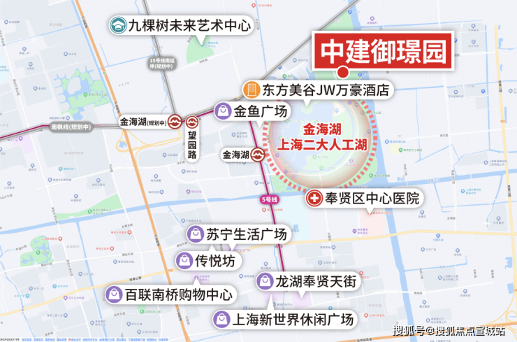 周边近百万方商业荟萃,龙湖奉贤天街、龙湖金汇天街均已开业;金海湖地铁上盖的金鱼广场正在火热建设中!