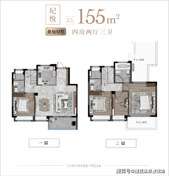 叠墅(155-165㎡四房):上下叠设计,下叠带花园,上叠配露台,四房三卫,适配多代同堂。
