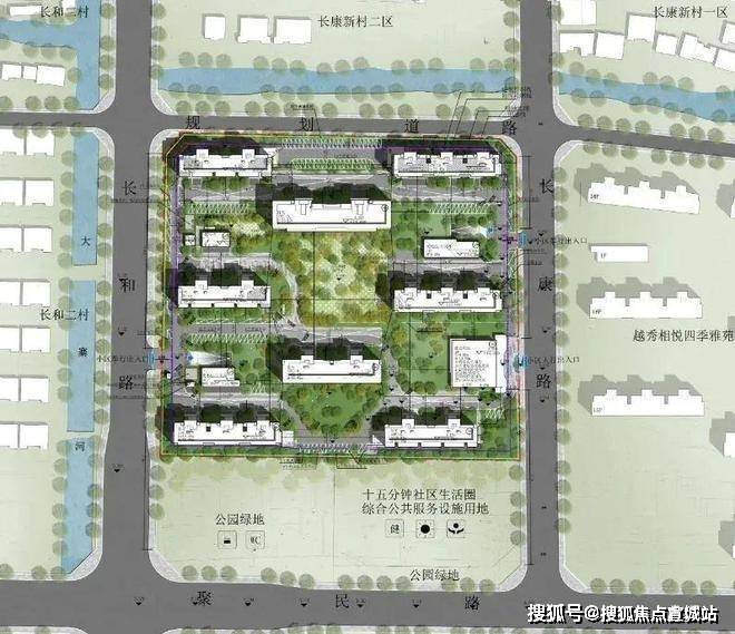 周边界面来看,也是不错的,北面是长康新村二区,东面是越秀相悦四季雅苑,南面是规划的公园绿地和十五分钟社区生活圈综合公共服务设施用地,西面则是住宅小区长和二村。
