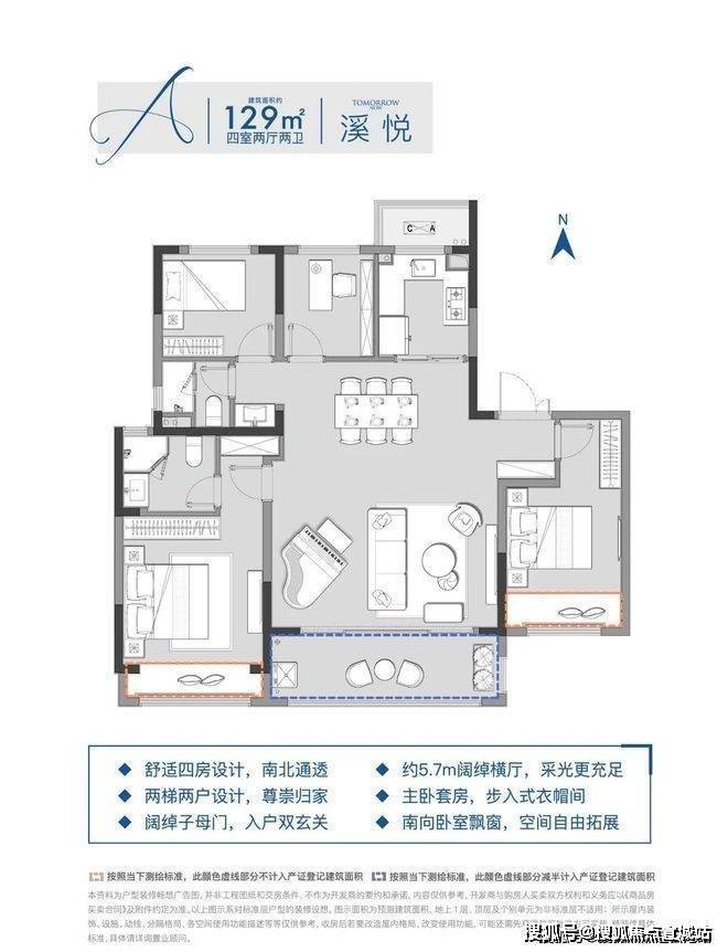 户型建面格局核心卖点总价区间129㎡四室两厅两卫南北通透南向双卧飘窗+主卧套房设计约260万起148㎡四室两厅两卫横厅布局5.7米景观阳台+子母门玄关约300万起