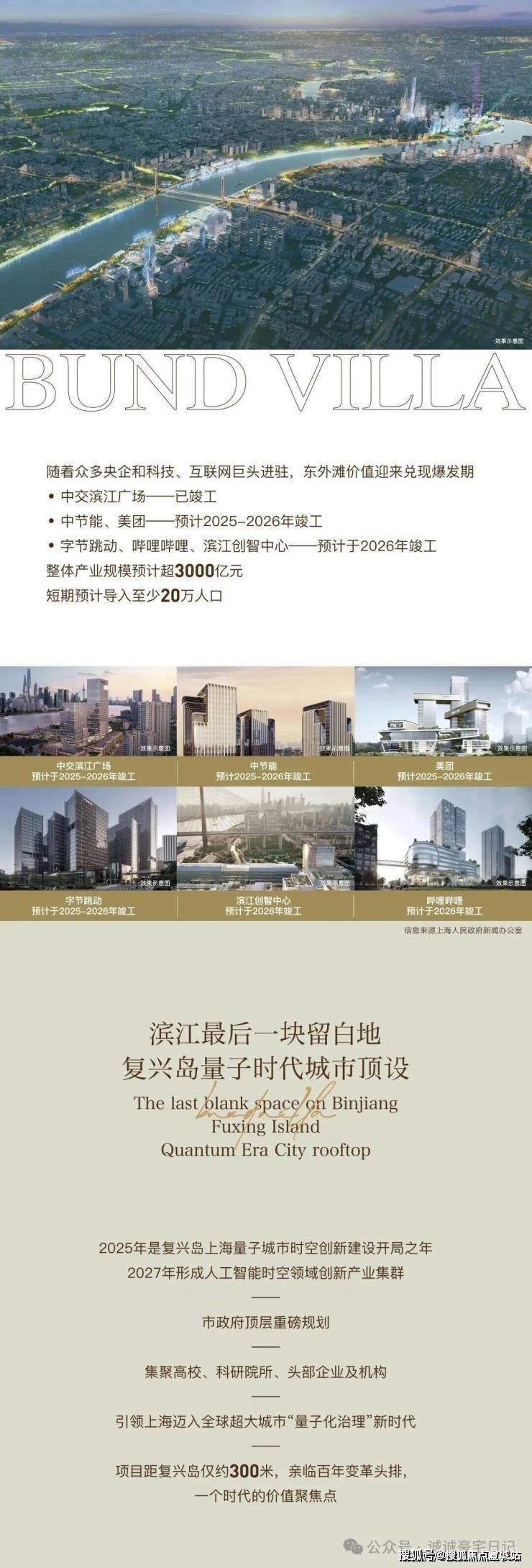 随着众多央企和科技、互联网巨头进驻,东外滩价值迎来兑现爆发期。中交滨江广场--已竣工中节能、美团--预计2025-2026年竣工,字节跳动、哔哩哔哩、滨江创智中心--预计于2026年竣工整体产业规模预计超3000亿元短期预计导入至少20万人口。