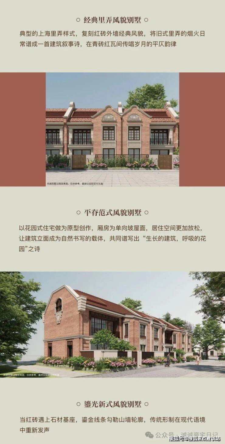 外滩源著・复兴里以“修旧如旧”理念重塑海派建筑精髓,外立面采用红砖与玻璃幕墙的碰撞设计,既保留石库门风貌的肌理,又融入现代极简美学,成为杨浦滨江首个“文化+居住”复合型别墅作品。项目采用“全两层+会所”形态,市面在售唯一全「两层」风貌社区,单层尺度最大化,更贴近传统风貌里弄形态。打破传统风貌窄面宽、长进深的格局,以「大面宽短进深」营造光感艺境,户型最大面宽可做到约13.5米,大尺度采光,纵享丰沛阳光和开阔视野,让居住空间更加明亮、舒适。