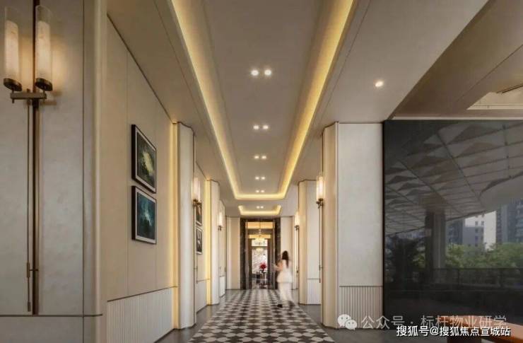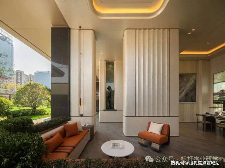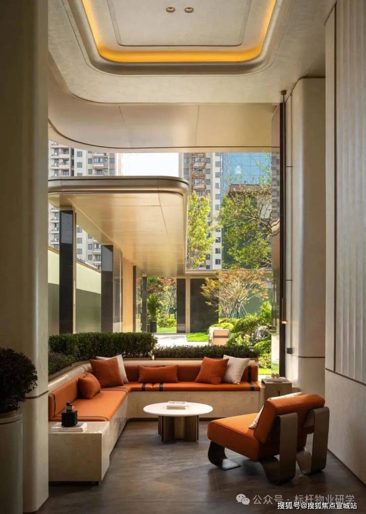 其创新性在入口处展现得淋漓尽致:常规沿街楼栋通常直接由物业用房过渡至住宅二层,但该项目在物业用房上方特别增设了架空层,形成"物业用房-架空层-住宅二层"的独特空间序列。这一设计突破性地通过地面整体抬升,不仅解放了沿街楼栋原本受限的架空层空间,更创造出尺度恢弘的入户大堂,使归家动线在垂直维度上获得仪式感的升华。