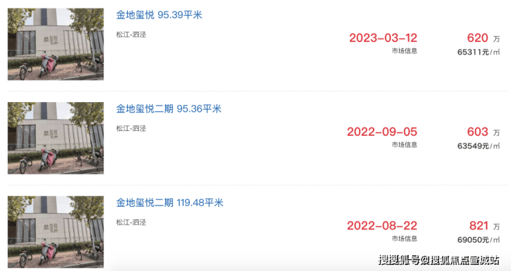 其他次新小区,比如泗泾大盘金地玺悦,二手房成交价也都在6.3-6.9万/㎡之间。