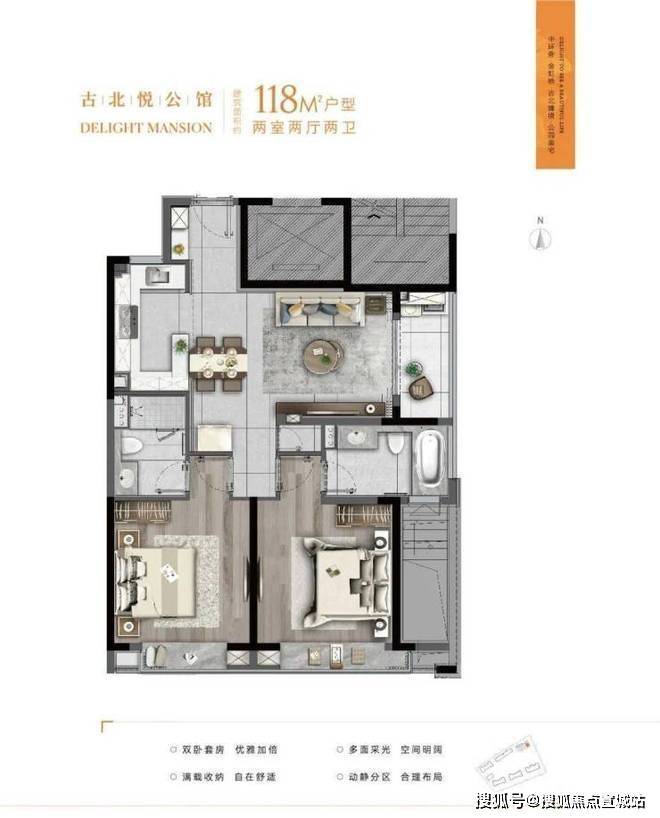 The total price of a two-bedroom apartment with a construction area of 118 square meters ranges from 10.11 million to 11.49 million yuan