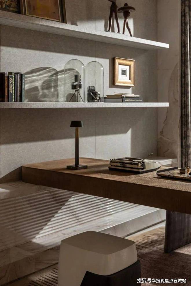 于是,设计师以“复古简约”风格铺陈全屋,就像王家卫电影里穿旗袍用智能手机的角色,矛盾产生故事性。