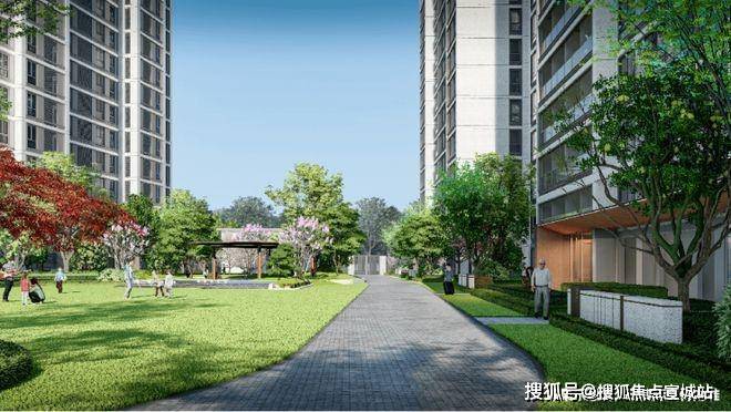 接着,沿中心景观轴前行,一片翠绿盎然的阳光大草坪赫然呈现,它与周围特色景观组团相互映衬,仿佛置身于开阔的度假胜地。