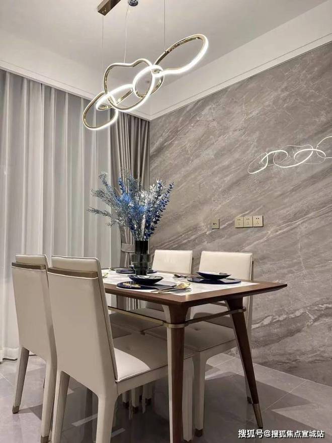 设计师剥离复古风格的冗余装饰,保留具有时代辨识度的核心元素,比如打破传统复古风格的封闭隔断,采用现代开放式布局,阳台、客厅与餐厅三大功能空间“化零为整”,并以台阶和拱门定义区域。