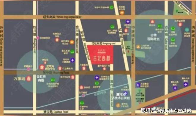 同时,金虹桥还和第一代国际社区—长宁古北毗邻。