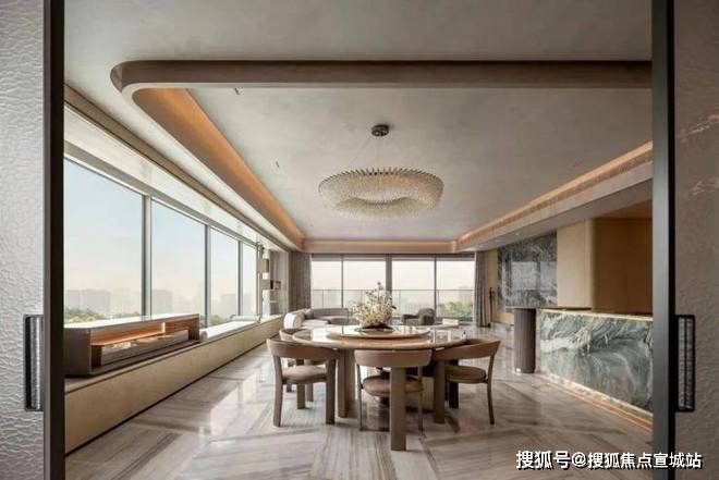 2、客厅与餐厅之间以台阶连接:用最原始的“高差”手段,以零占地的垂直维度实现分区,保留90%以上的视觉通透性。