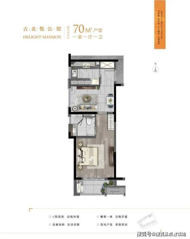 The total price of a one-bedroom apartment with a construction area of 50/60/70 square meters ranges from 4.52 to 6.63 million yuan